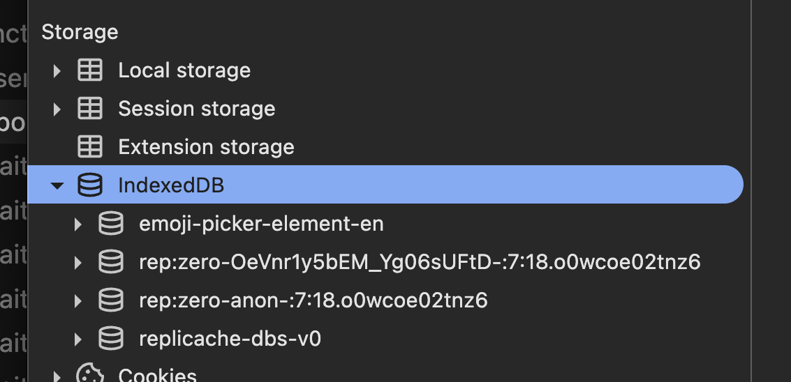 Zero's IndexedDB databases are prefixed with 'rep' or 'replicache' because reasons.